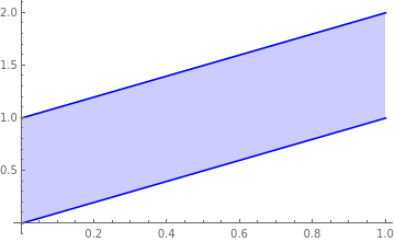 \[ f_{X,Y}(x,y) = 1 ~~~~, ~0<x<1 \text{ and } x<y<x+1 \]