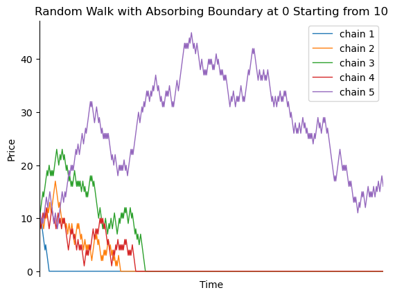만약 끝에 도달했을 때 더 이상 이동하지 않고 그 자리에 멈추는 경우도 생각할 수 있다. 이러한 것을 absorbing boundary라고 부른다.